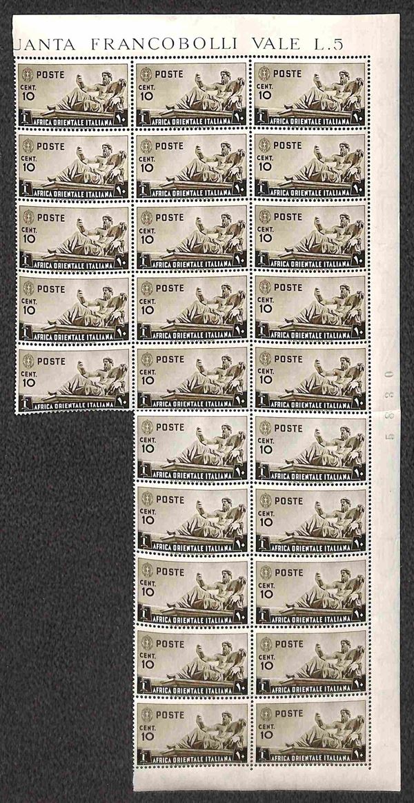 1938 - 10 cent Pittorica (4) - blocco angolare di 25 - gomma integra