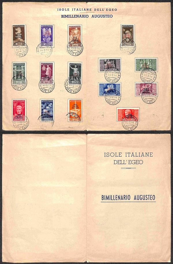 1938 - Augusto (99/108 + Aerea 47/51) - serie completa - 15 valori usati su pieghevole dell'emissione - Rodi 20.2.41