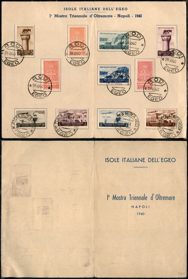 1940 - Triennale (111/117 + Aerea 52/55) - serie completa usata su pieghevole dell'emissione il 28.10.40