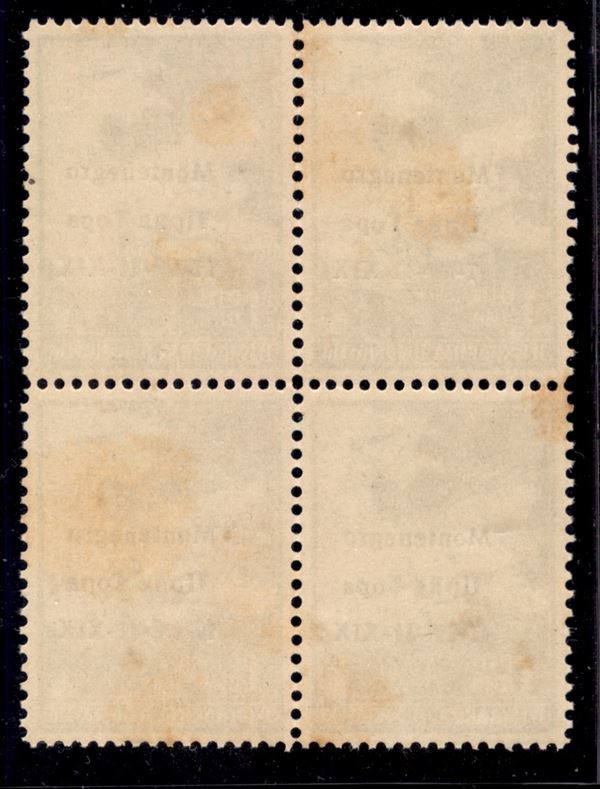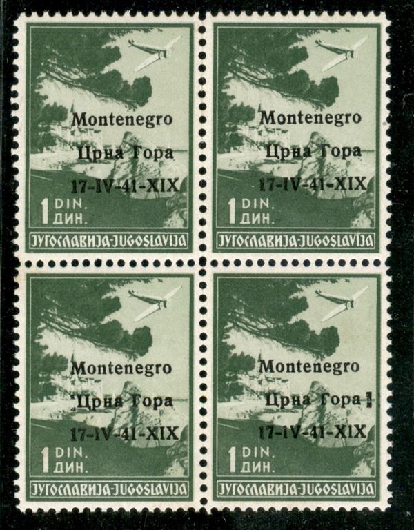1941 - 1 din Posta Aerea (2+2h varietà) - quartina - in basso a destra errore 17-1V-41-X1X + spazio tipografico - gomma integra con lievi ingiallimenti