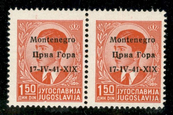 1941 - 1,50 din (3 pa) - coppia orizzontale con errore X1X - 7 rotto nel pezzo di sinistra - gomma integra