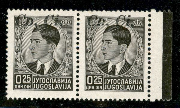 1941 - 25 para (1d + 1c/d) - coppia bordo di foglio con soprastampe in alto + o rotta sul pezzo di destra - gomma integra