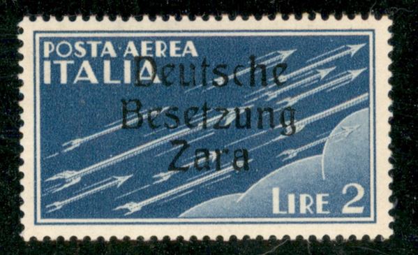 1943 - 2 lire Posta Aerea (6 t) - c + t strette (pos.24) - gomma originale