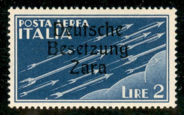 1943 - 2 lire Posta Aerea (6 varietà) - prima "a" con punto - gomma integra - non catalogato - Oliva