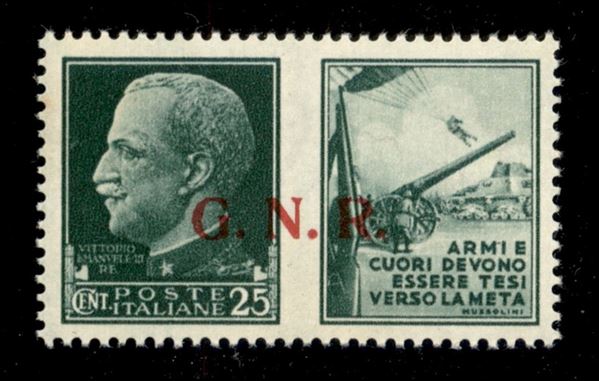 1943 - 25 cent Esercito (14/Ied) con punto piccolo dopo G (pos. 64) - gomma integra
