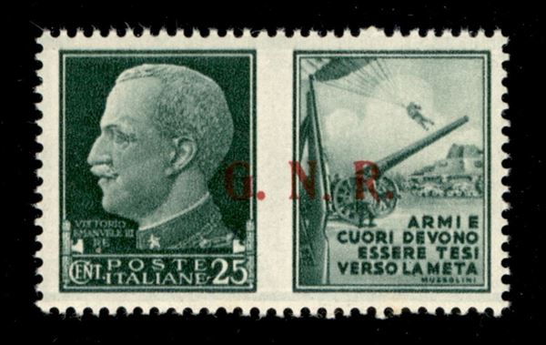 1943 - 25 cent Esercito (14/IIee) con punto piccolo dopo N (pos. 84) - soprastampa a destra - gomma integra
