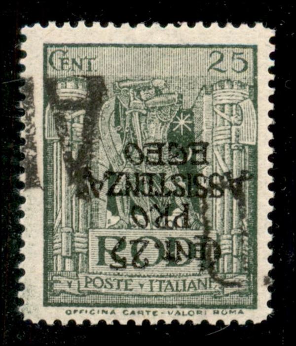 1943 - Demonetizzato (Annullato) - 25 cent Pro Assistenza (121a) con soprastampa capovolta - gomma originale - Raybaudi