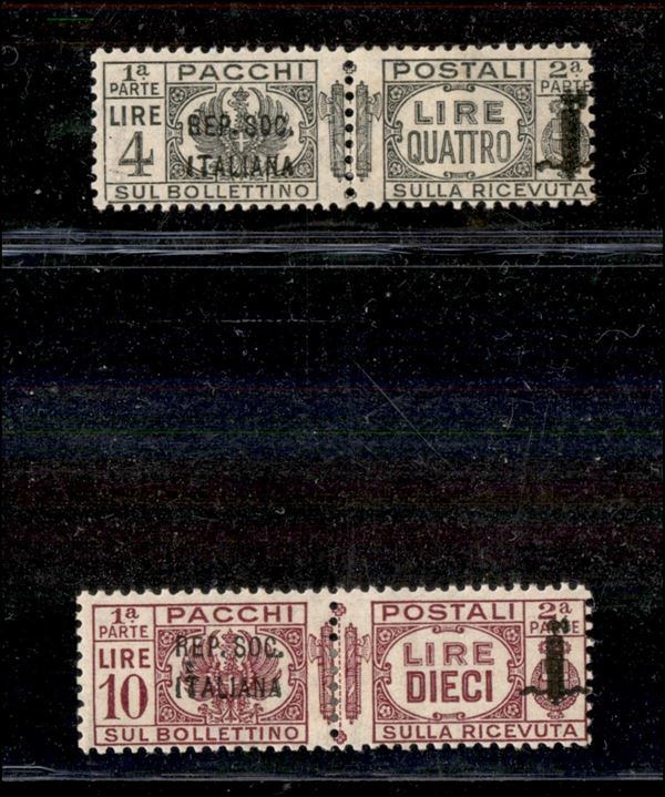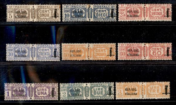 1944 - Pacchi Postali (36/46) - 11 valori - gomma originale - punto giallo su 5 cent e 10 cent - 2 lire ottimamente centrato