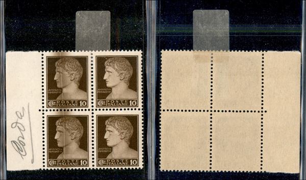 1945 - 10 cent (520) - quartina bordo di foglio - taglio chirurgico verticale a sinistra - gomma originale integra nella coppia inferiore