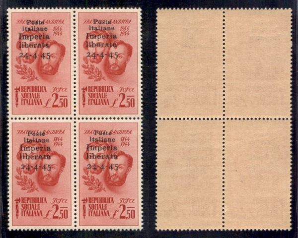 1945 - 2,50 lire Bandiera (15) in quartina - gomma integra (160+)