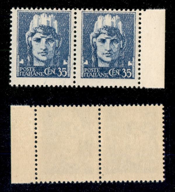 1945 - 35 cent Imperiale (527a) - coppia bordo foglio con stampa evanescente - gomma integra