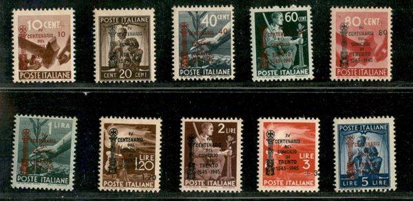 1945 - Concilio di Trento - serietta di 10 valori (10 cent/5 lire) - gomma integra - AS (Scotto)