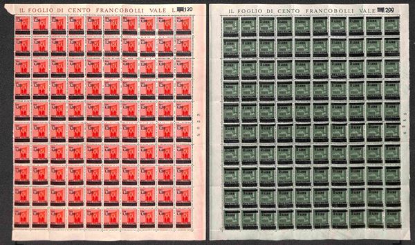 1945 - Soprastampati (524/525) - serie completa in fogli di cento - 1,20 lire senza bordo foglio a sinistra - gomma integra