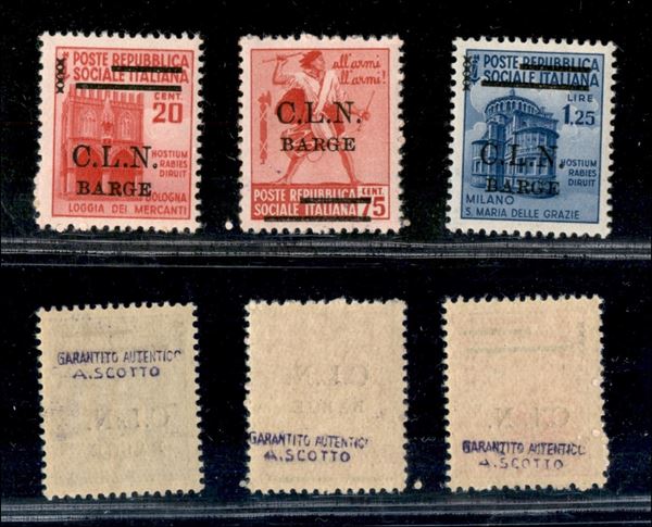 1945 - Tre valori diversi (2+5+7) - gomma integra