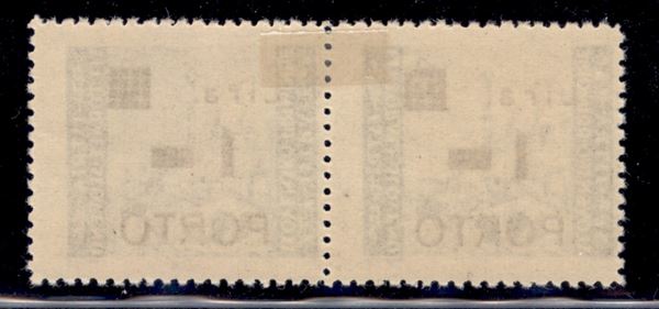 1946 - 1 lira su 1 lira Segnatasse (8+8a) - coppia orizzontale - punto tondo nel pezzo di destra - gomma originale