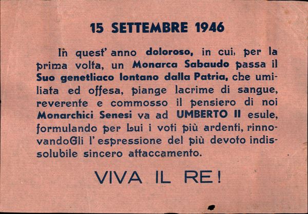 1946 - 15 settembre - Viva il Re! - volantino su carta salmone
