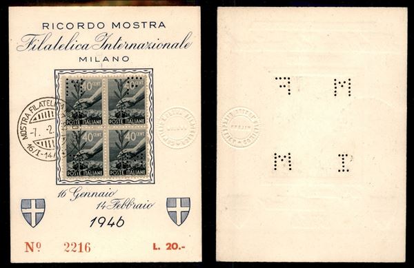 1946 - 20 lire - Milano/Ricordo Mostra Filatelica Internazionale - cartoncino ricordo