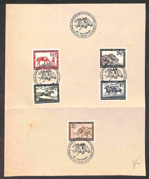 1946 - Cavalli (785/789) - serie completa su foglio con annullo primo giorno