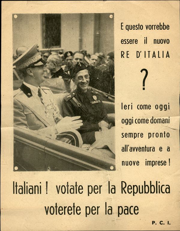 1946 - Italiani! Votate per la Repubblica - P.C.I. - volantino su carta camoscio
