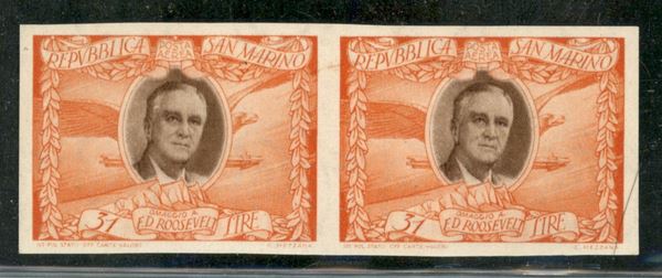 1947 - 31 lire Roosvelt Posta Aerea (65) - coppia orizzontale - non dentellati - gomma integra
