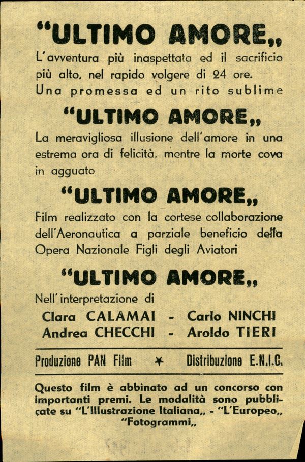 1947 - Ultimo Amore - Pan Film - 16 aprile - volantino su carta gialla