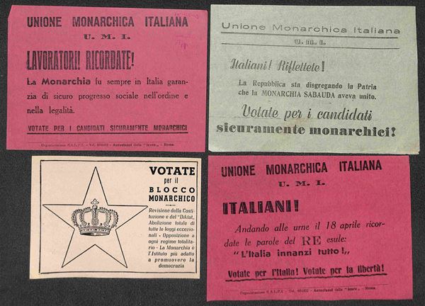 1948 - Blocco Monarchico - quattro volantini elettorali diversi