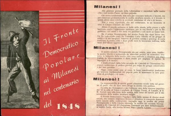 1948 - Il Fronte Democratico Popolare ai Milanesi nel centenario del 1848 - volantino elettorale illustrato