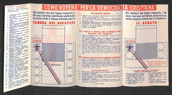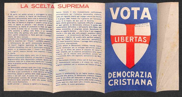 1948 - Vota Libertas - Democrazia Cristiana - Milano - volantino pieghevole con facsimile scheda elettorale e istruzioni per il voto