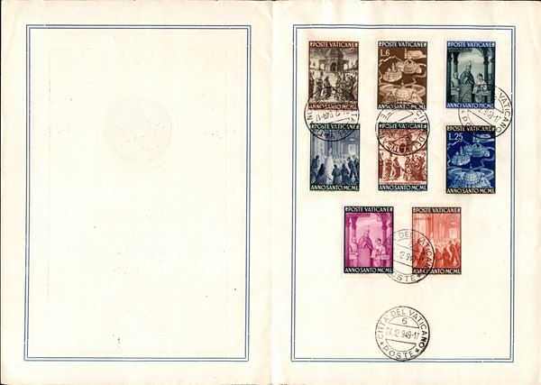 1949 - Anno Santo serie completa (132/39) su cartoncino delle Poste Vaticane con annullo 21.12.49