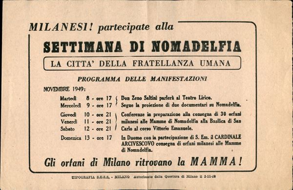 1949 - Milano Settimana del Normadelfia - volantino della manifestazione