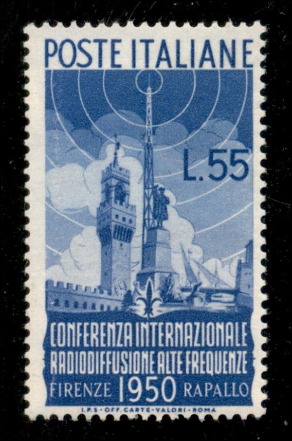 1950 - 55 lire Radiodiffusione (624) - gomma integra (bruna da calssificatore) - da esaminare