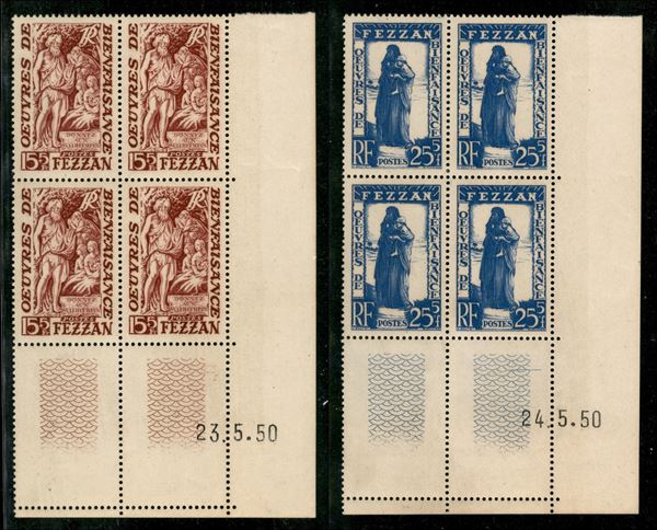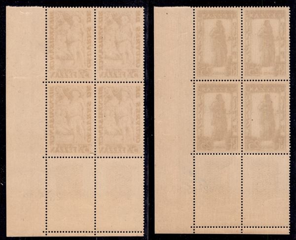 1950 - Beneficenza (27/28) - serie completa in quartine angolo di foglio - gomma integra