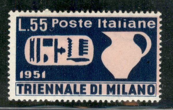 1951 - 55 lire Triennale (667 varietà) - filigrana ND + fondo rosa spostato in alto e a destra - non catalogato - gomma integra
