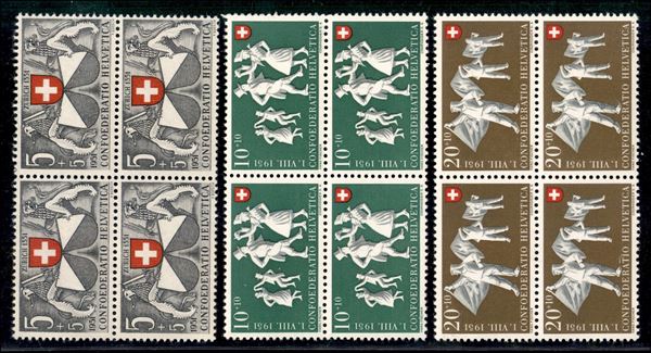 1951 - Pro Patria (555/559) - serie completa in quartine - gomma integra