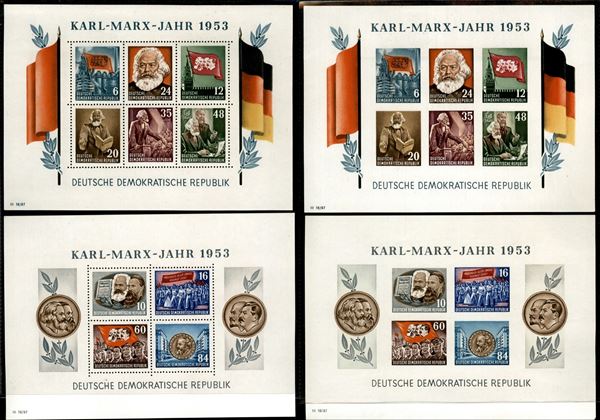 1953 - Foglietti Karl Marx (Block 8/9 A+B) - emissione completa 4 foglietti dentellati e non - gomma integra