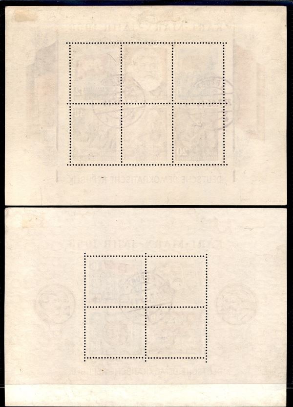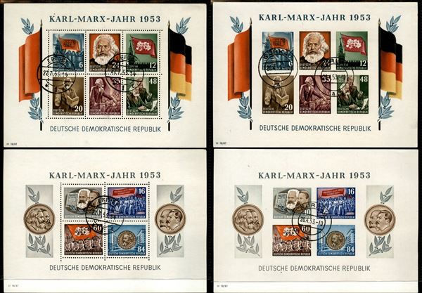 1953 - Foglietti Karl Marx (Block 8/9 A+B) - emissione completa 4 foglietti dentellati e non - usati con annulli di favore