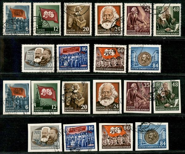 1953 - Karl Marx (386/395 A+B) - emissione completa - dentellati e non - usati - annulli di favore