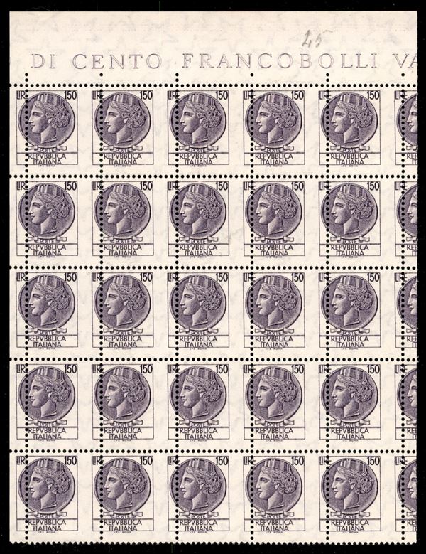1976 - 150 lire Turrita (1083A varietà l) - blocco di 25 - gomma integra