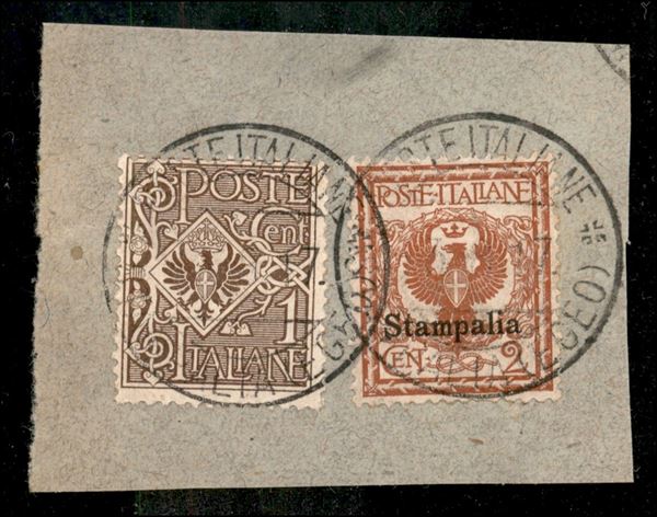 2 cent (1) in uso misto con Regno (68) su frammento del 3.8.17