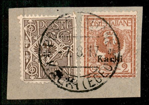 2 cent (1) in uso misto con Regno (68) su frammento del 7.8.17