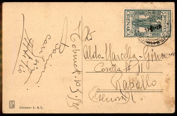 20 + 5 cent Istituto Coloniale (34) - cartolina da Tripoli a Rapallo del 13.5.29
