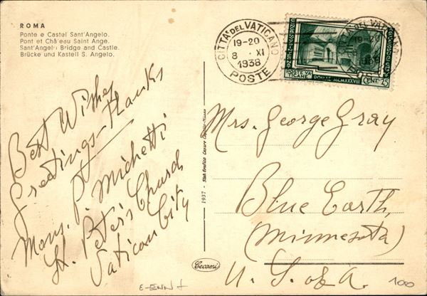 25 cent Congresso Archeologico (57) isolato su cartolina per gli USA del 8.XI.1938
