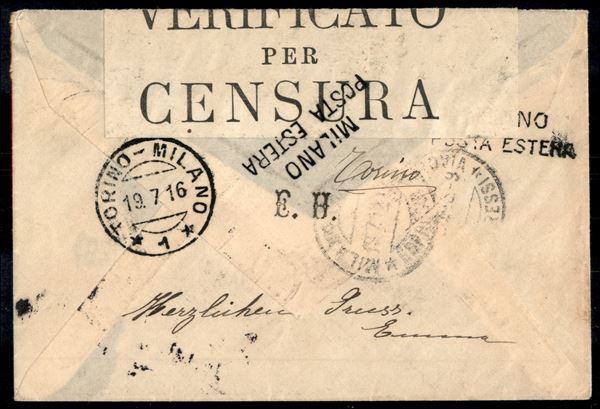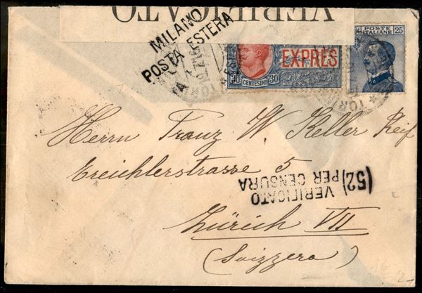 25 cent Michetti (83) + 30 cent Espressi (2) su lettera per la Svizzera da Torino del 19.7.16 - con censure