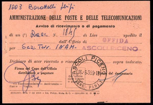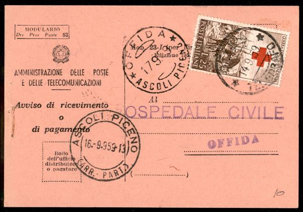 25 lire Croce Rossa a Magenta (867) isolato su ricevuta di ritorno