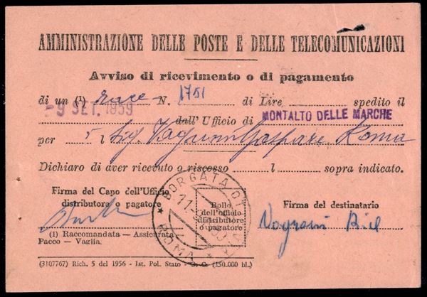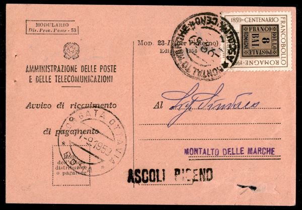 25 lire Francobolli delle Romagne (875) isolato su ricevuta di ritorno