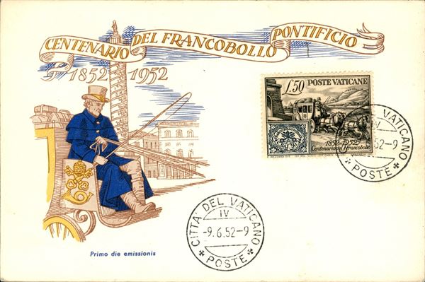 50 lire Centenario dei Francobolli (155) su cartolina con annullo FDC