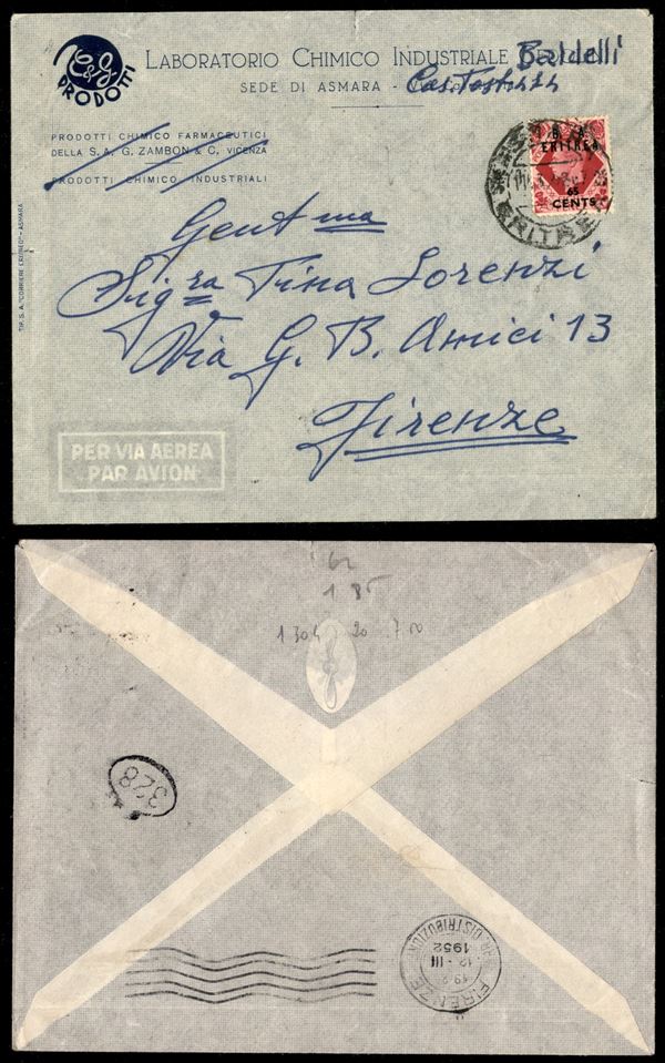 65 cent su 8 pence (21) - aerogramma da Asmara a Firenze del 11.3.52 (100)