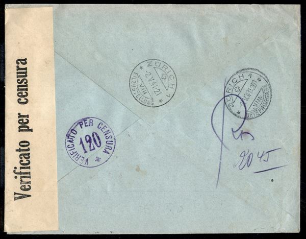 75 cent + 1,25 lire Hitler e Mussolini + 2,50 lire Espressi (256/57 + Espressi 16) su lettera espresso per Zurigo da Milano del 23.4.41 - con censure