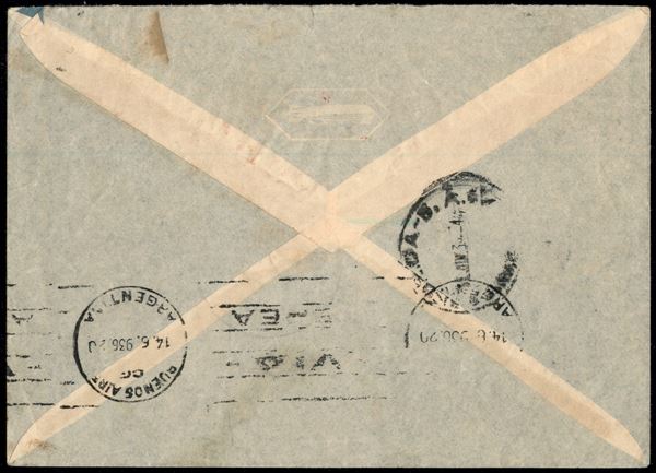 75 pfennig (607) + 100 pfennig (537) - aerogramma da Berlino a Buenos Aires del 10.6.36