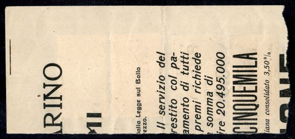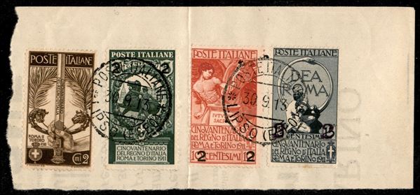 Affrancatura di Regno (92 + 99/101) su frammento di giornale - Lipso 30.9.13